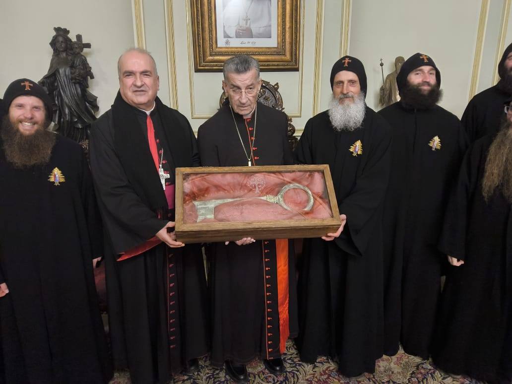 استقبل البطريرك الماروني الكاردينال مار بشارة بطرس الراعي، بعد ظهر الأربعاء ٤ آذار ٢٠٢٦ في بكركي، وفد رهبنة بيت مارون برفقة المطران حنّا رحمة، حيث قدّم الرهبان لغبطته مفتاح دير مار مارون في لقاء حمل طابعًا روحيًا وكنسيًا مميّزًا.