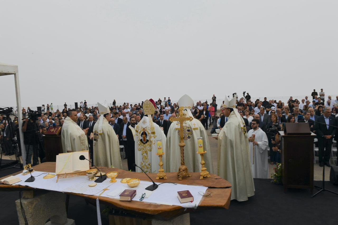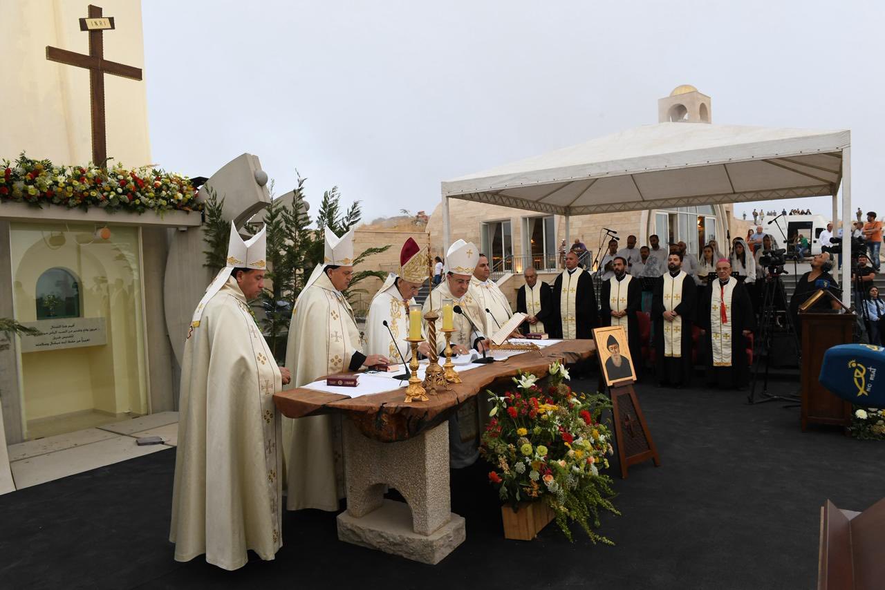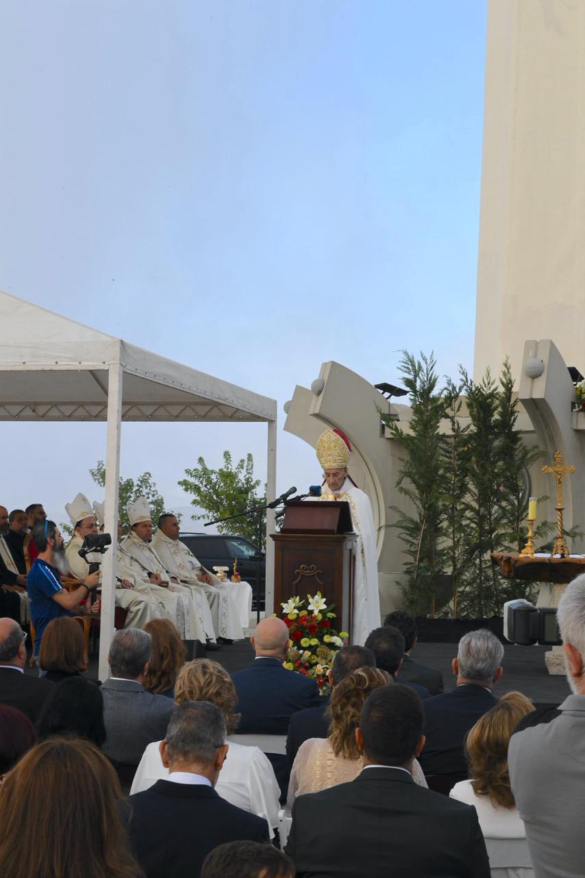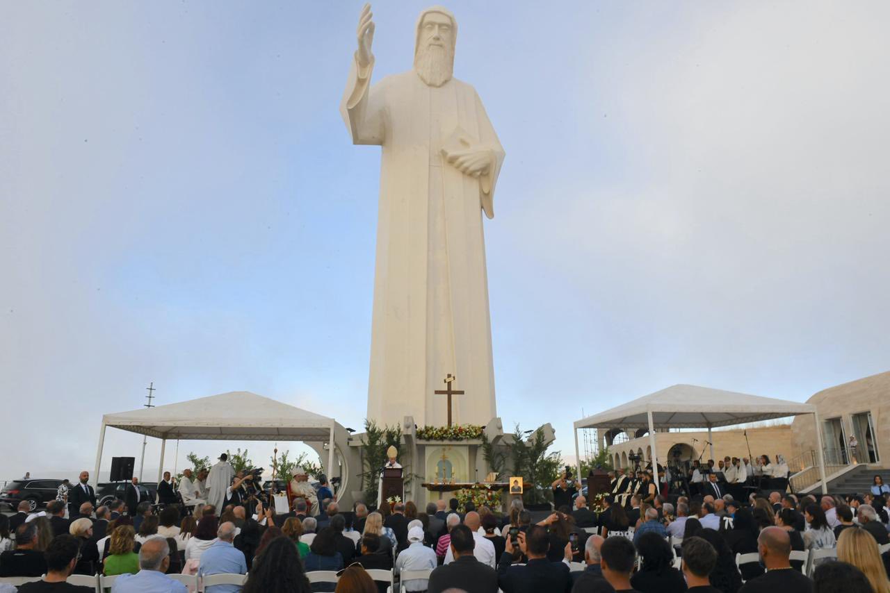 4. من على هذا الجبل حيث تلتقي السماء بالأرض، لا يمكننا إلّا أن نصلّي من أجل لبنان، وطننا الحبيب. القدّيس شربل، الذي يحمل لبنان في قلبه وصلاته، يدعونا اليوم لنحمل لبنان إلى الله، بكلّ جراحه وأزماته، بكلّ شعبه المتألّم، بكلّ شبابه الحائر والمهاجر والمقيم. إنّ الرسالة التي يتركها لنا إنجيل اليوم، ورسالة هذا المزار، هي أنّنا مدعوّون لنكون نحن نورًا للبنان، هذا الوطن لا ينهض فقط بخطط إقتصاديّة أو قرارات سياسيّة، بل قبل كلّ شيء بقلوب مؤمنة، صادقة نقيّة، تتلألأ بفضائل كالشمس في حياتها اليوميّة. لقد اختار مار شربل العيش في الصمت والصلاة، ليضع سلامًا في قلبه. ونحن كلبنانيّين مدعوّون لأن نختار طريق الوحدة والمصالحة، وطريق تنقية الذاكرة، وطريق الحياد الإيجابيّ المعترف به من منظّمة الأمم المتّحدة.
