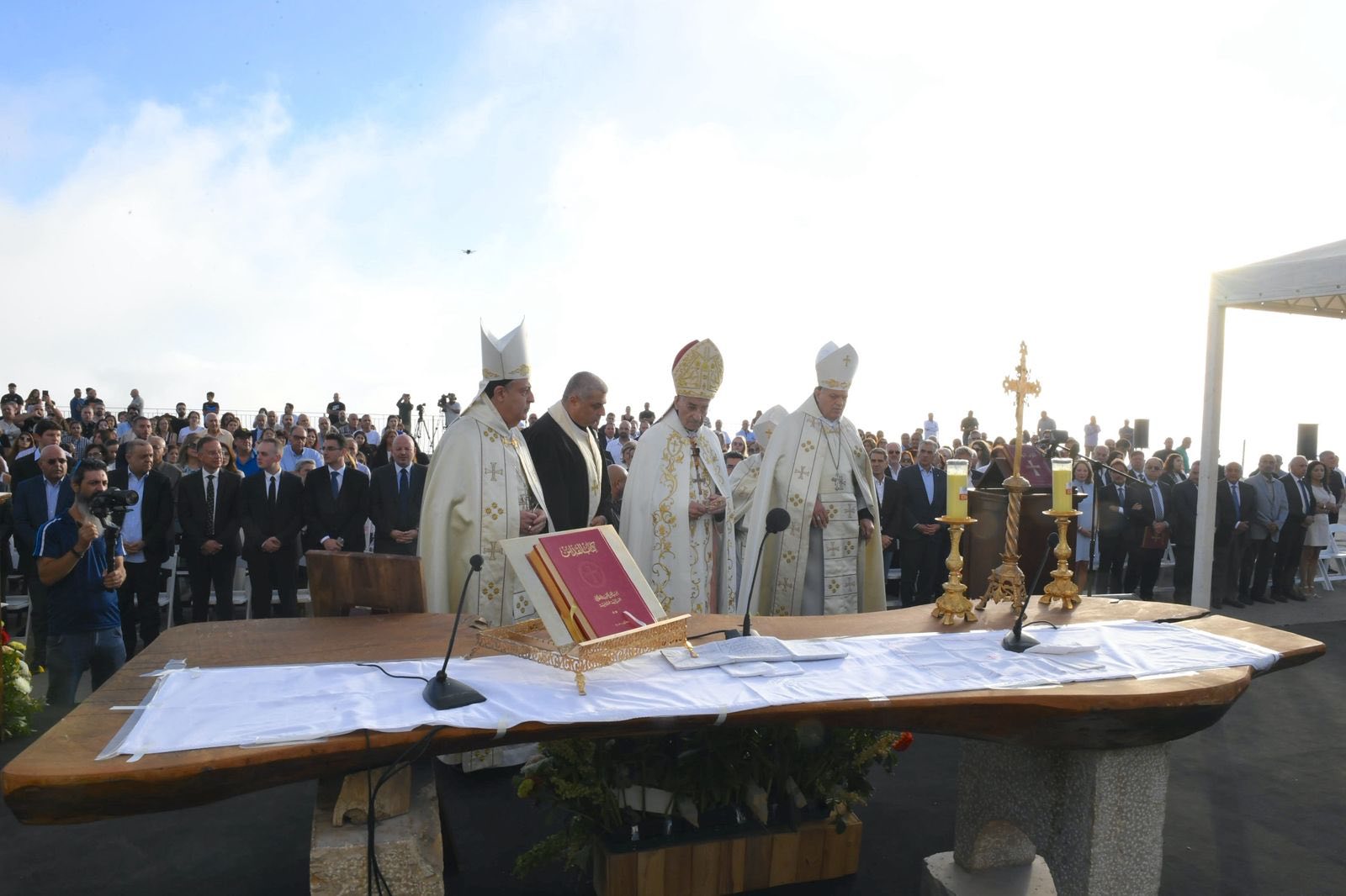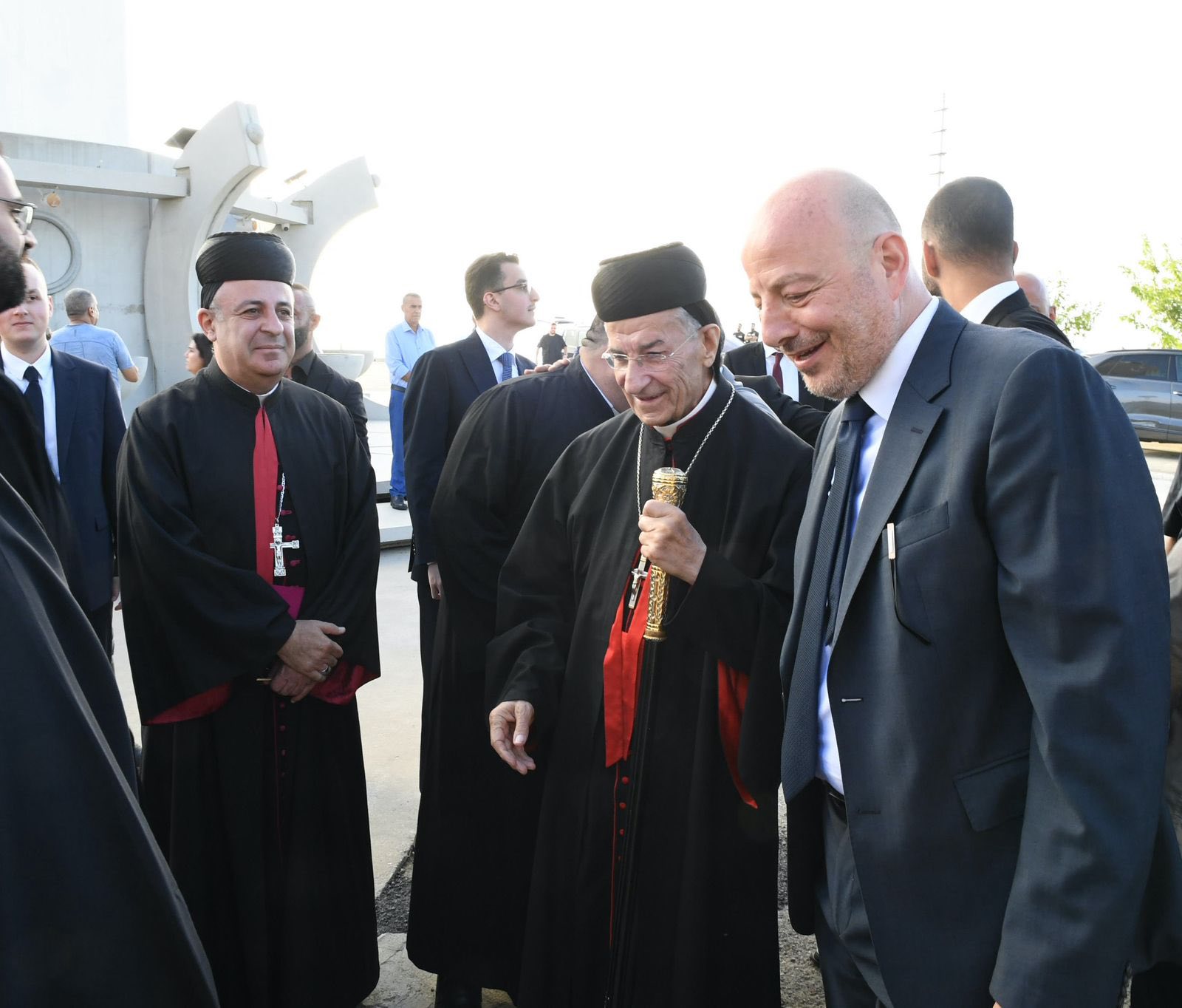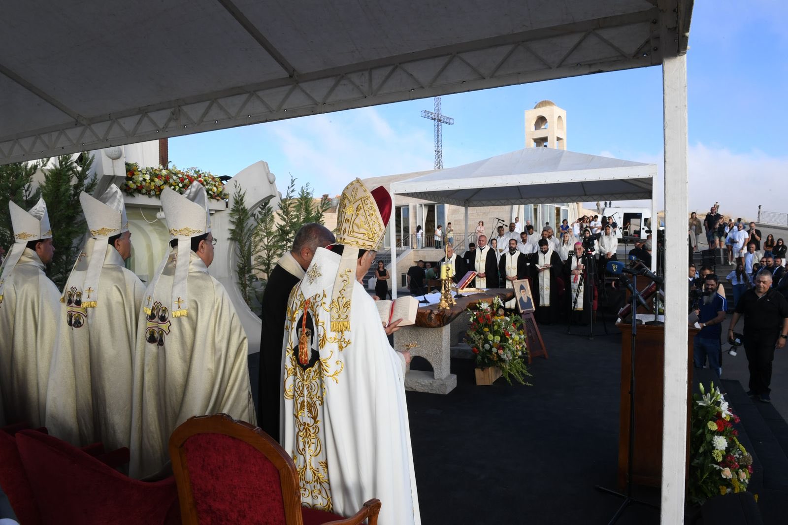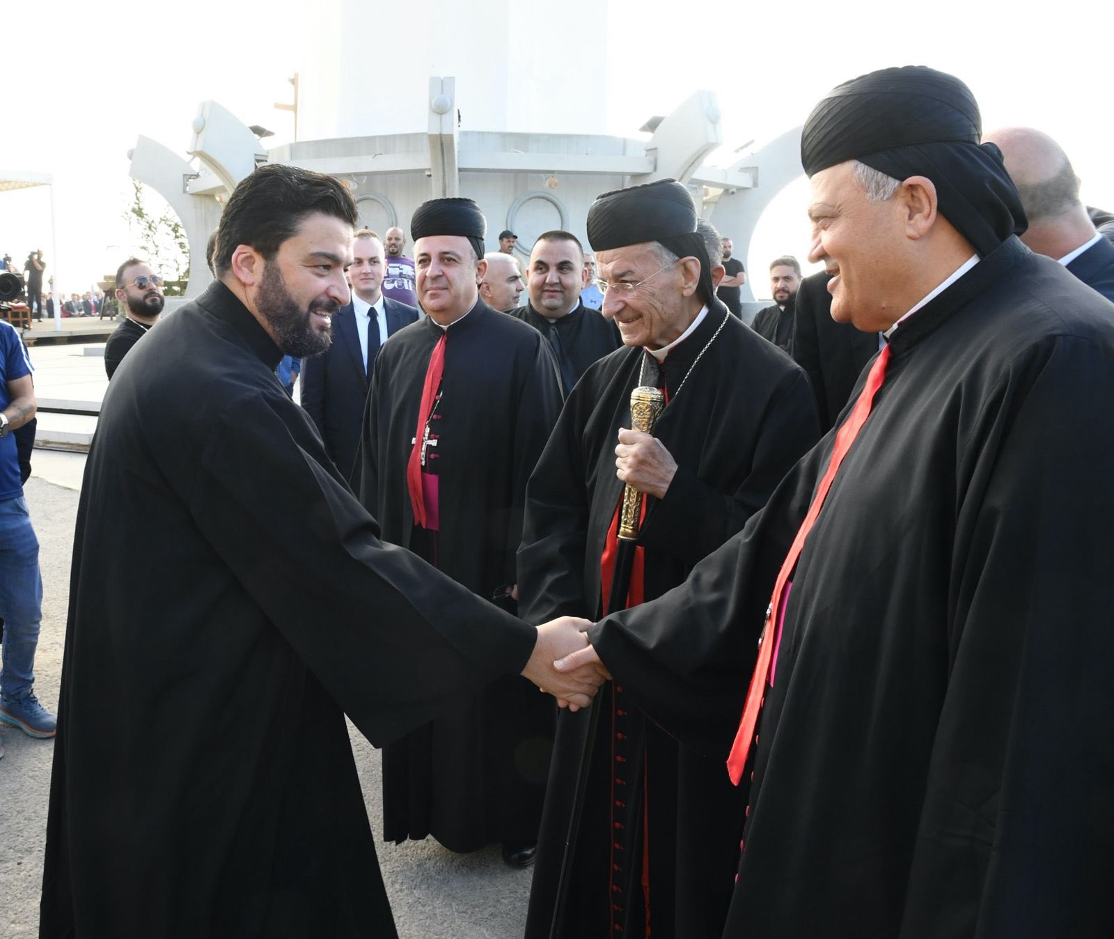4. من على هذا الجبل حيث تلتقي السماء بالأرض، لا يمكننا إلّا أن نصلّي من أجل لبنان، وطننا الحبيب. القدّيس شربل، الذي يحمل لبنان في قلبه وصلاته، يدعونا اليوم لنحمل لبنان إلى الله، بكلّ جراحه وأزماته، بكلّ شعبه المتألّم، بكلّ شبابه الحائر والمهاجر والمقيم. إنّ الرسالة التي يتركها لنا إنجيل اليوم، ورسالة هذا المزار، هي أنّنا مدعوّون لنكون نحن نورًا للبنان، هذا الوطن لا ينهض فقط بخطط إقتصاديّة أو قرارات سياسيّة، بل قبل كلّ شيء بقلوب مؤمنة، صادقة نقيّة، تتلألأ بفضائل كالشمس في حياتها اليوميّة. لقد اختار مار شربل العيش في الصمت والصلاة، ليضع سلامًا في قلبه. ونحن كلبنانيّين مدعوّون لأن نختار طريق الوحدة والمصالحة، وطريق تنقية الذاكرة، وطريق الحياد الإيجابيّ المعترف به من منظّمة الأمم المتّحدة.