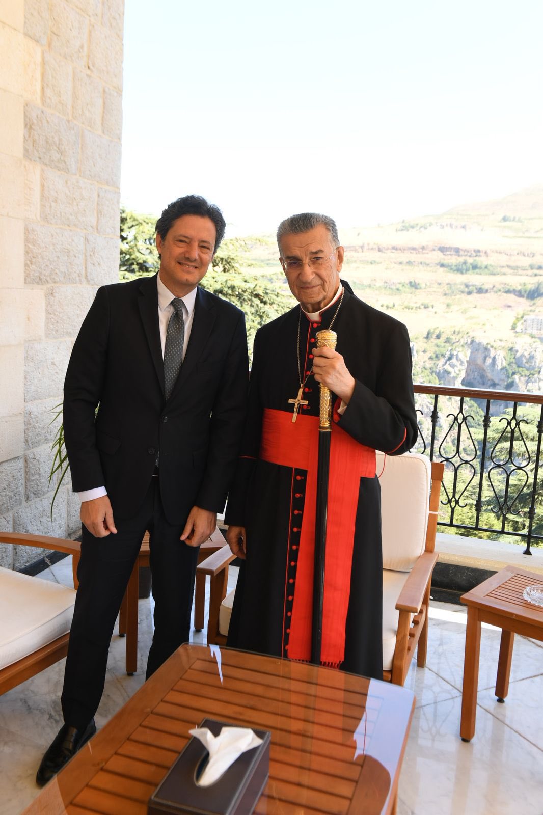 بعدها استقبل غبطته وفدا من لقاء سيدة الجبل ضم النائبين السابقين فارس سعيد ومصطفى علوش والاستاذين انطوان الخوري طوق وشربل عيد وكان عرض للمواضيع الاساسية التي تهم لبنان واللبنانيين . وقال سعيد بعد اللقاء : بداية الزيارة هي للإطمئنان على صاحب الغبطة وتهنئته بالسلامة . وقد تم التداول بكافة المواضيع التي تهم لبنان وتحديدا المواضيع الاساسية التي نتشارك والبطريرك فيها لا سيما مواضيع السلاح والودائع والملف اللبناني السوري ، وتوافقنا او اصرينا مع سيدنا على ان الدولة هي الوحيدة القادرة على حل مشاكل اللبنانيين واضعاف هذه الدولة لأي سبب من الأسباب يفسح بالمجال امام ادخال لبنان في فوضى لا يمكن الرجوع عنها وبالتالي التمسك بالدستور اللبناني وقرارات الشرعية الدولية والدولة اللبنانية بكل مكوناتها الدستورية كفيل بحل كل المشاكل .