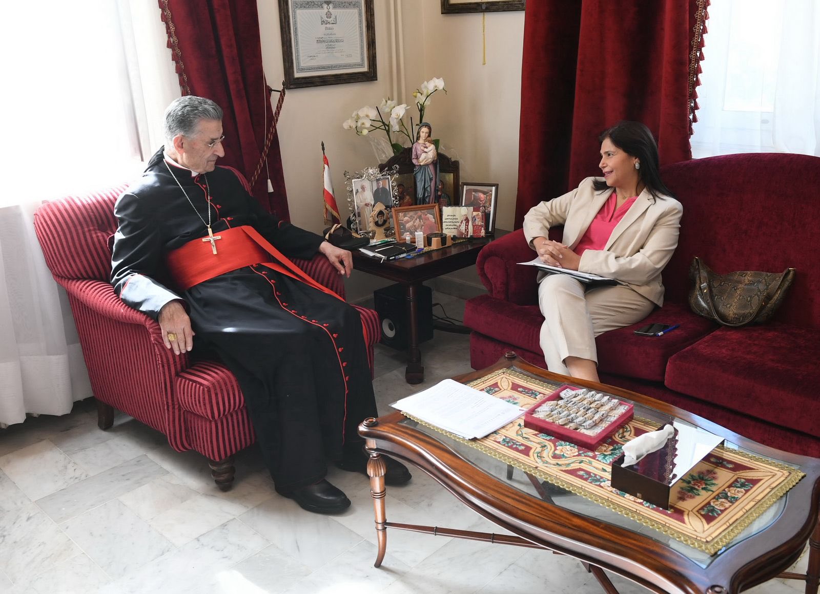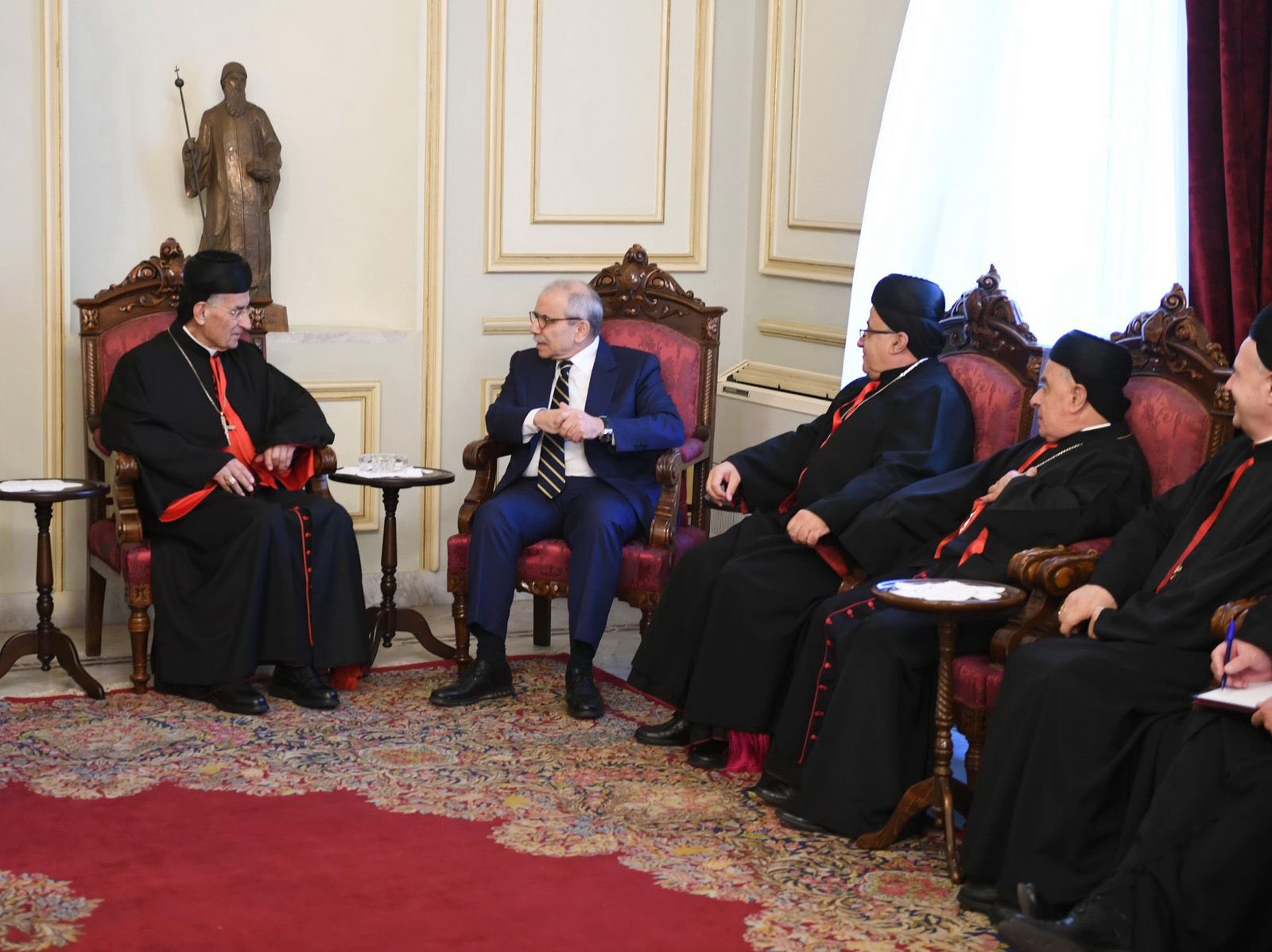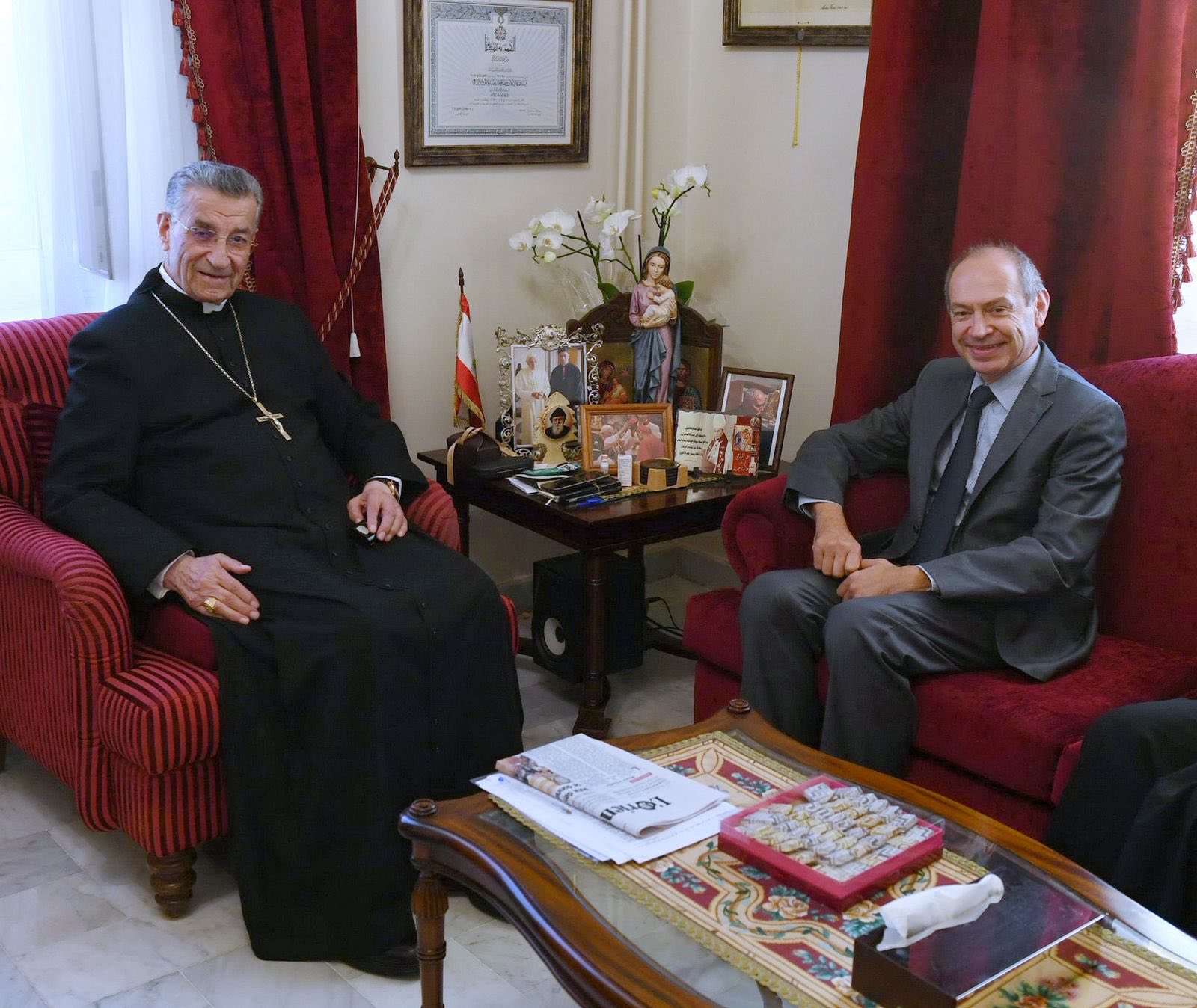 لقد وضعت صاحب الغبطة بعد عودتي من روما في جو اللقاء مع قداسة البابا الذي كان مهما ومفيدا جدا. ورحبت باسم جميع اللبنانيين بزيارته الى لبنان معربا عن مدى تأملنا بنتائج هذه الزيارة. وكانت مناسبة أراد قداسته الإطلاع فيها على الوضع في لبنان، وبدوري اثنيت على مواقفه بالنسبة للحرب في غزة والموقف الثابت للفاتيكان بموضوع فلسطين.”