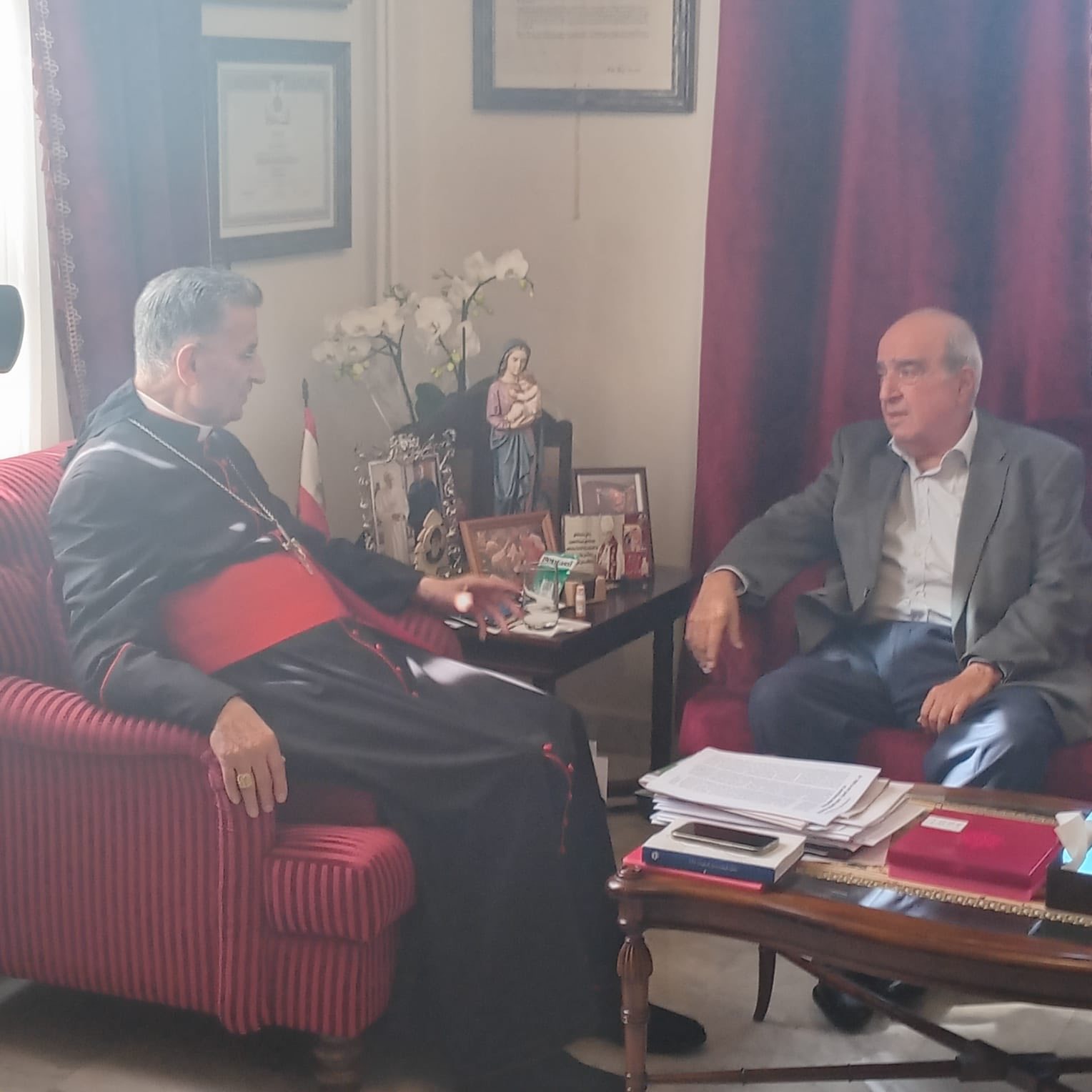 والتقى غبطته البروفسور أنطوان مسرة العضو المؤسس للمؤسسة اللبنانية للسلم الأهلي ورئيسها ربيع قيس اللذان وجها دعوة لغبطته لرعاية وحضور المؤتمر الإقليمي للمحاكم الذي تنظمه المؤسسة الشهر المقبل في المعهد العالي للأعمال – كليمنصو، بمشاركة قضاة ورؤساء محاكم من لبنان والأردن وفلسطين.